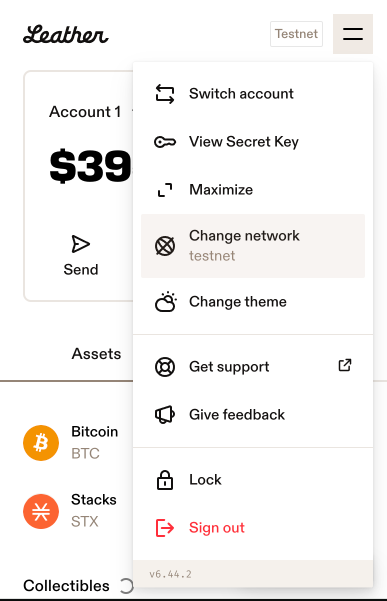 If you see the message below, it means that your Leather wallet is in the incorrect environment, change it to the correct environment and try again.